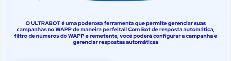 ATENÇÃO: O ULTRABOTWA não se responsabiliza pelos banimentos de números dos usuários. Ao usar o nosso sistema, o usuário deverá estar ciente que é de sua responsabilidade manter as boas práticas nos envios de mensagens, se atentando sempre as atualizações da política de uso do WhatsApp.