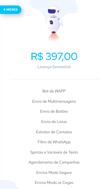 A licença do ULTRABOTWA é para uso em apenas 1 Computador ou Notebook, mas caso queira poderá adquirir licenças adicionais.